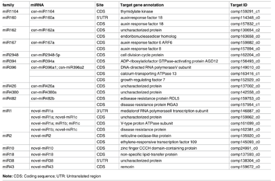 表1.通過降解組測(cè)序鑒定茶樹1005中miRNA靶向基因