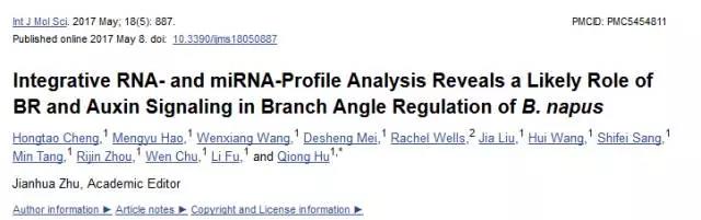 題目:mRNA-miRNA整合分析揭示BR、auxin信號通路參與調控油菜分蘗(分枝)角度